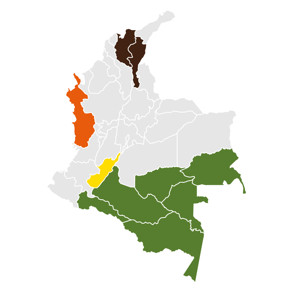 En esta región que comprende seis departamentos (Guainía, Vaupés, Guaviare, Amazonas, Caquetá y Putumayo), nuestro trabajo se ha concentrado en el acompañamiento y defensa de comunidades indígenas. Allí hemos trabajado con organizaciones indígenas tanto regionales como territoriales para la defensa ante modelos económicos extractivos.